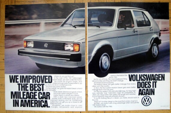 1981 Vw Rabbit Diesel Volkswagen 42 56 Mpg Original 2 Page Etsy